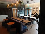 Our main hall is approximately 15m x 6.5m and is furnished with tables and chairs and has large windows with views over the landscaped area to the front of the building.