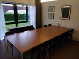 A bright and airy room located overlooking the landscaped area to the side of the hall, this room is furnished with tables and chairs and TV for presentations